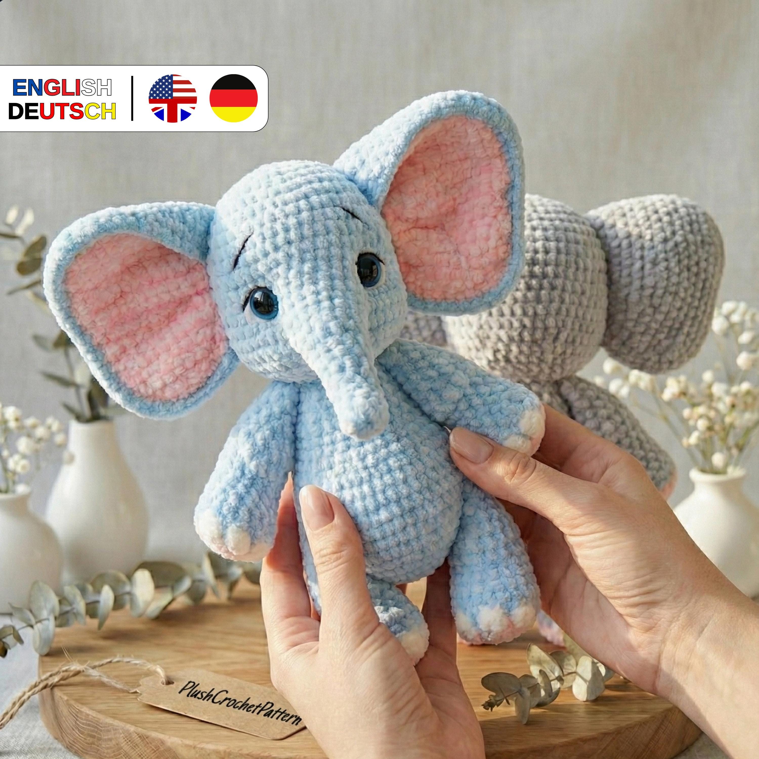 Elephant Crochet Pattern, Amigurumi Elephant Pattern, Plush Elephant Toy Pattern, PDF Pattern in English 🐘🧶✨