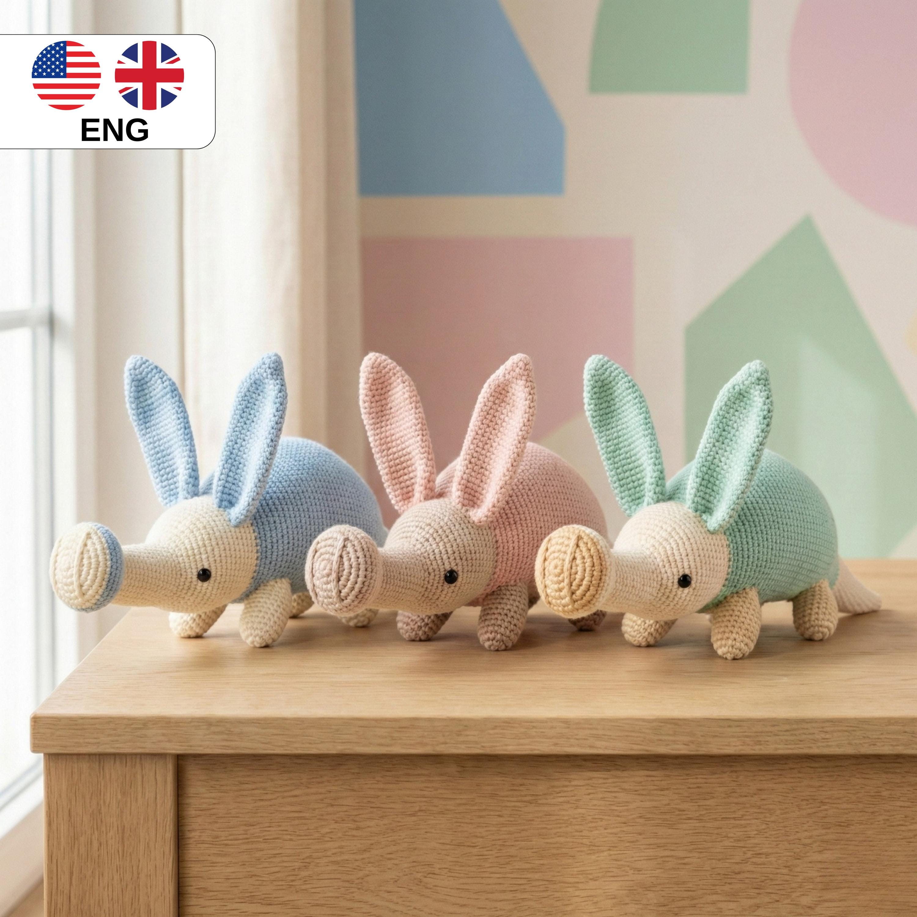 Upon purchase, you will receive a digital crochet pattern (PDF format) to create a long plush-style Aardvark amigurumi.