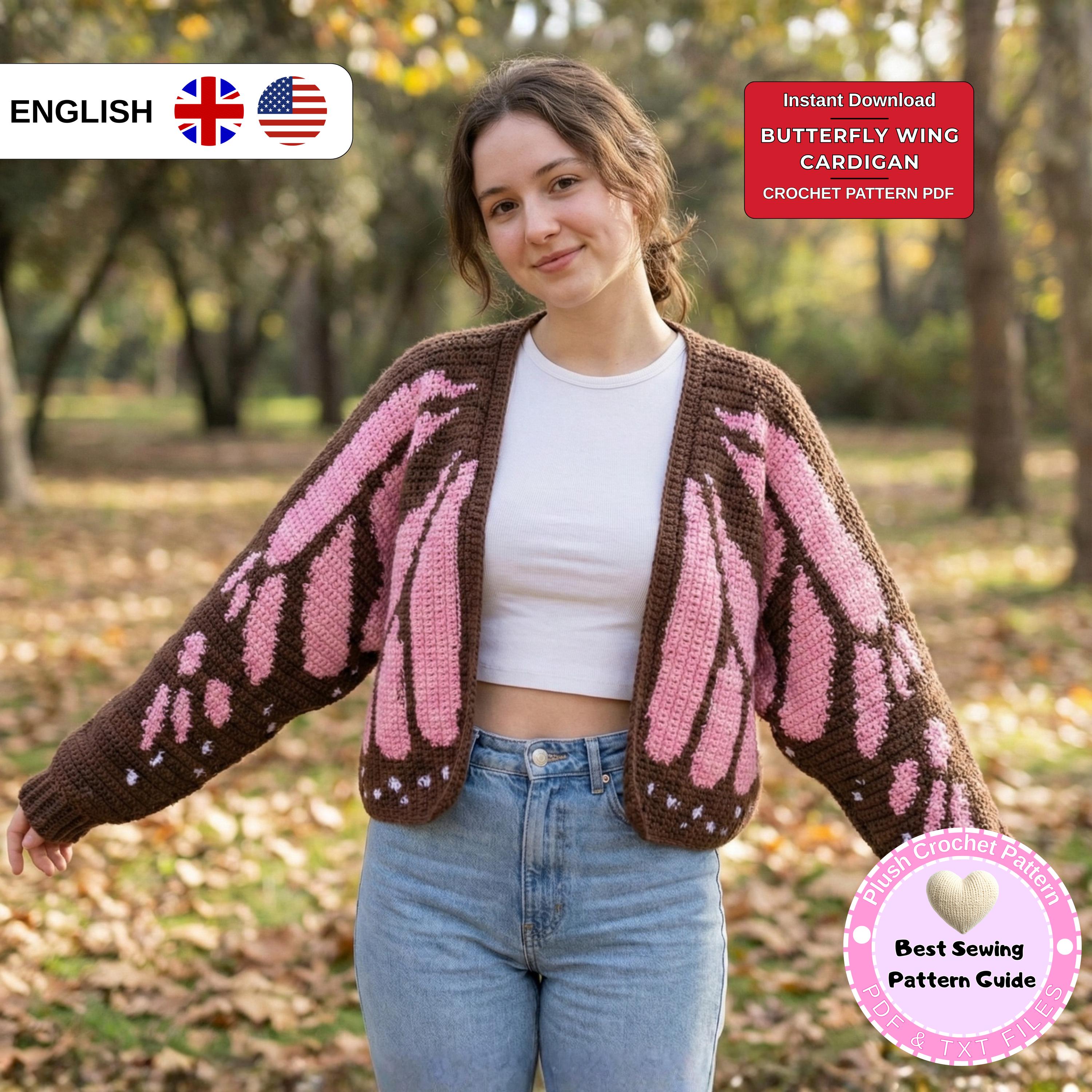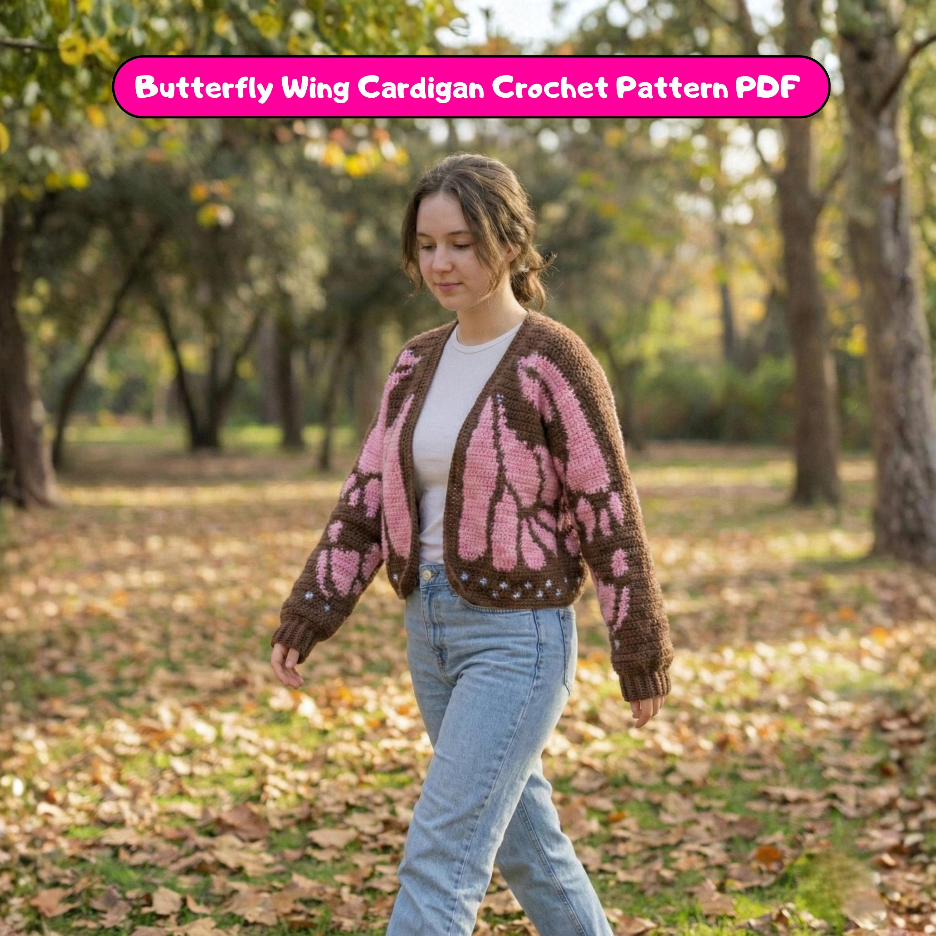 Monarch Butterfly Crochet Pattern PDF Oversized Winged Sweater Crochet Cardigan Gift For Crocheter DYI Nature Fashion Digital Download