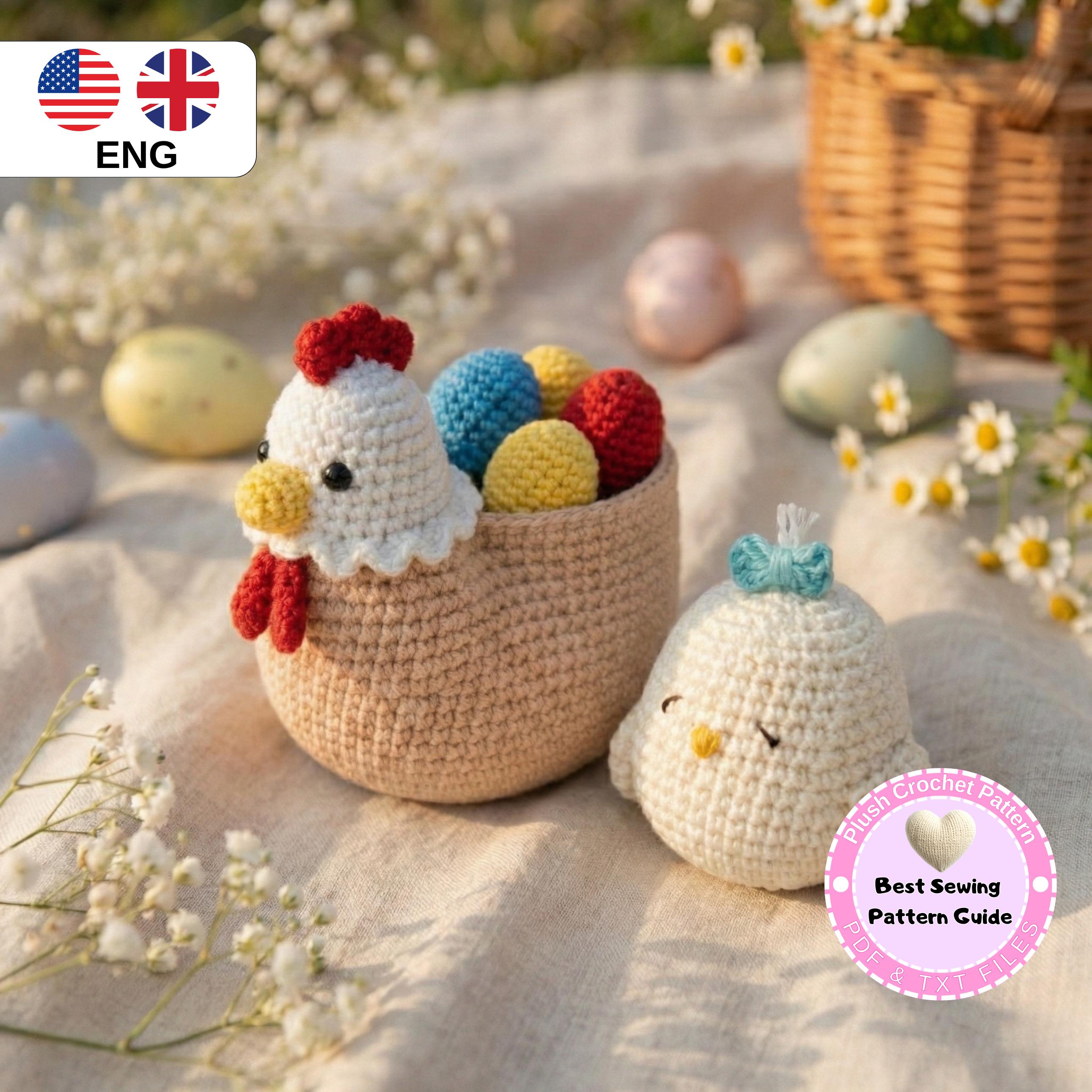 Easter Chicken Crochet Pattern PDF – Cute Chick Amigurumi, Hen Egg Basket Crochet, Easter Mini Chick Pattern, Spring DIY Gift for Kids
