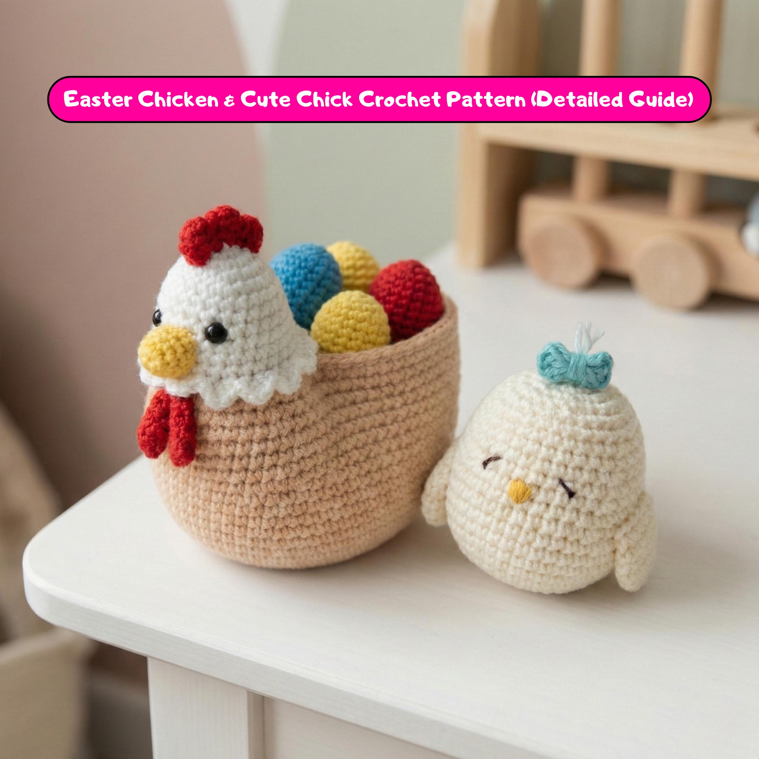🌼 Easter Chicken & Cute Chick Amigurumi – Plush Crochet Pattern (PDF)